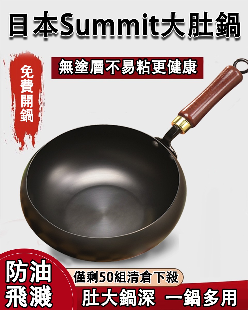 4分鐘前日本Summit無塗層大肚不粘鍋,肚大鍋深,油星不逃,無塗層物理不粘更健康,僅剩50組限時限量清倉下殺。 - 【僅限今日!】Summit炒鍋28cm1件(送鍋蓋+鐵鏟)-NT$ 1480